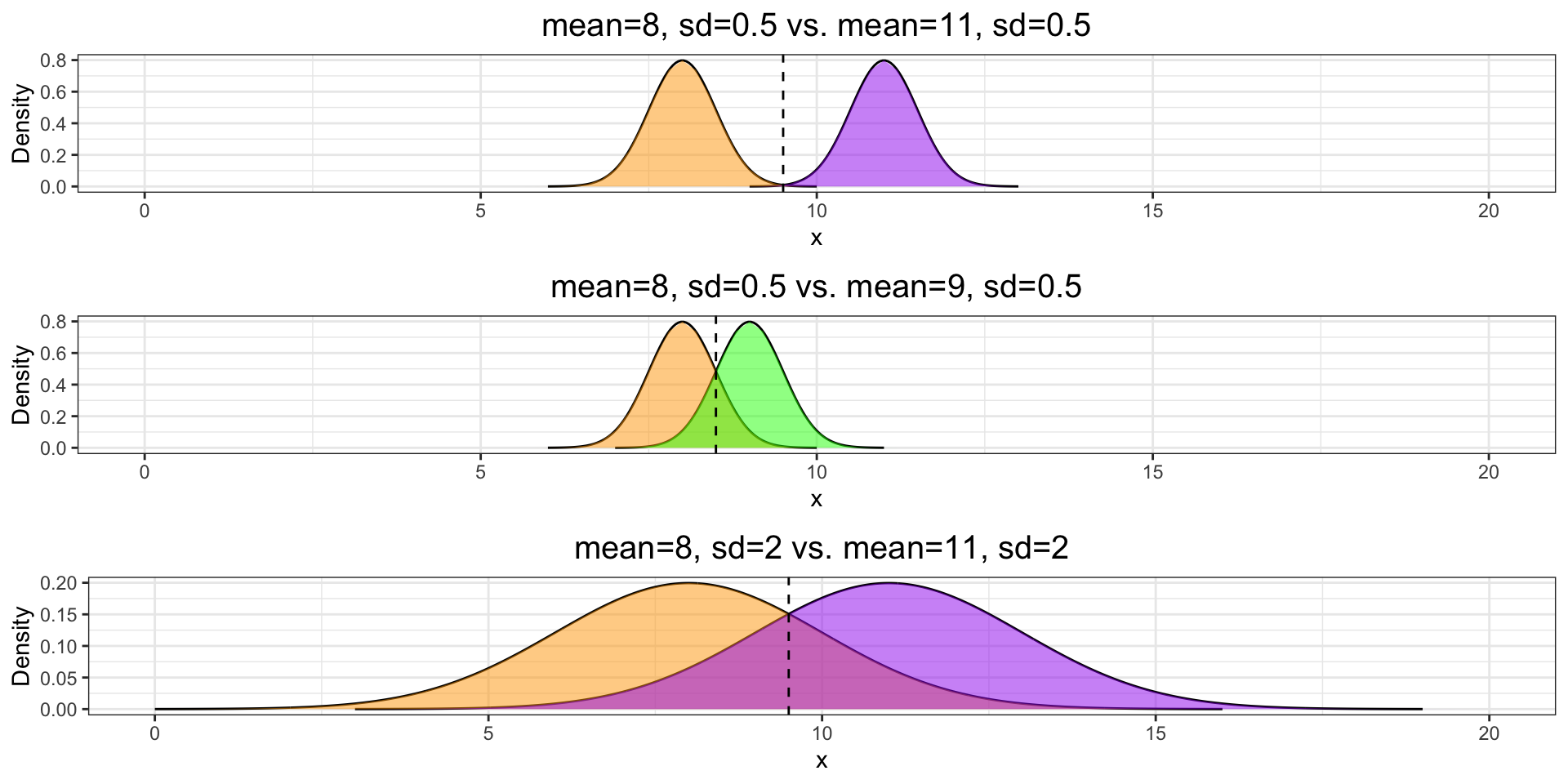 In which scenario are the means of the two groups significantly different?