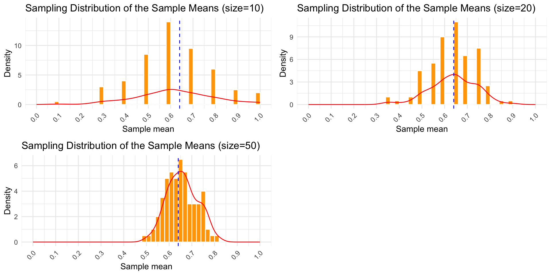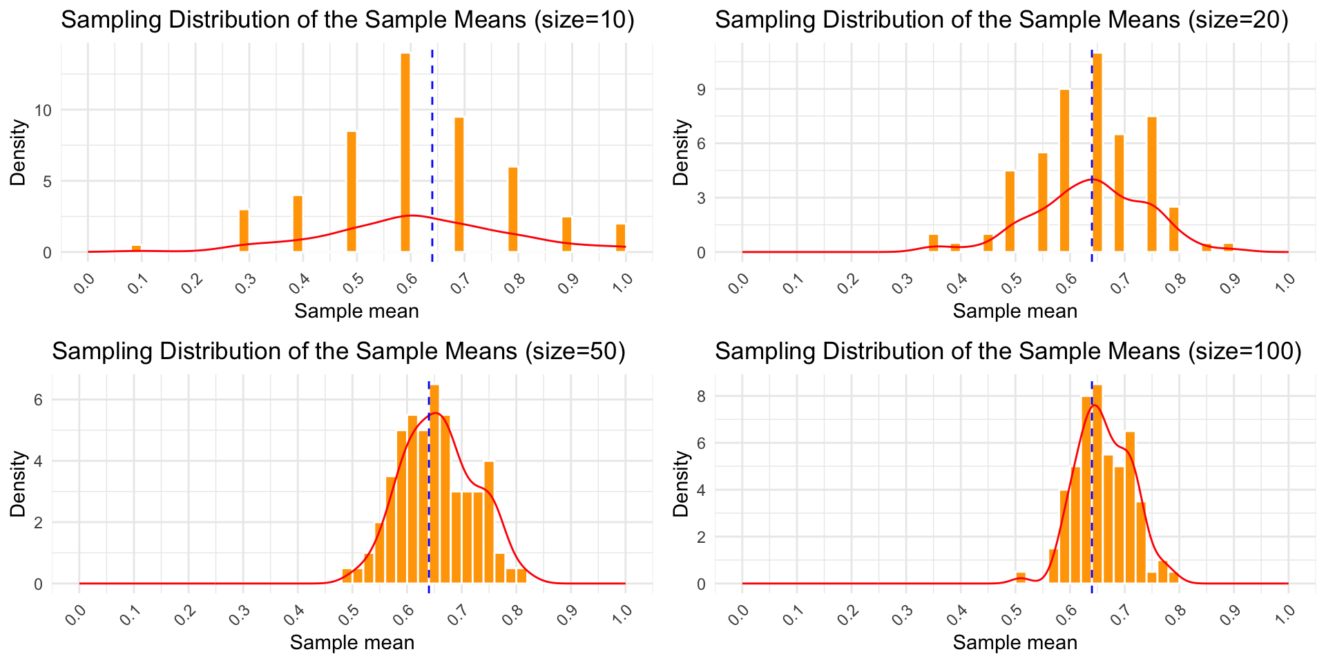 As the sample size increases, typically when it’s greater than 30, the distribution of the sample means approaches a normal distribution.